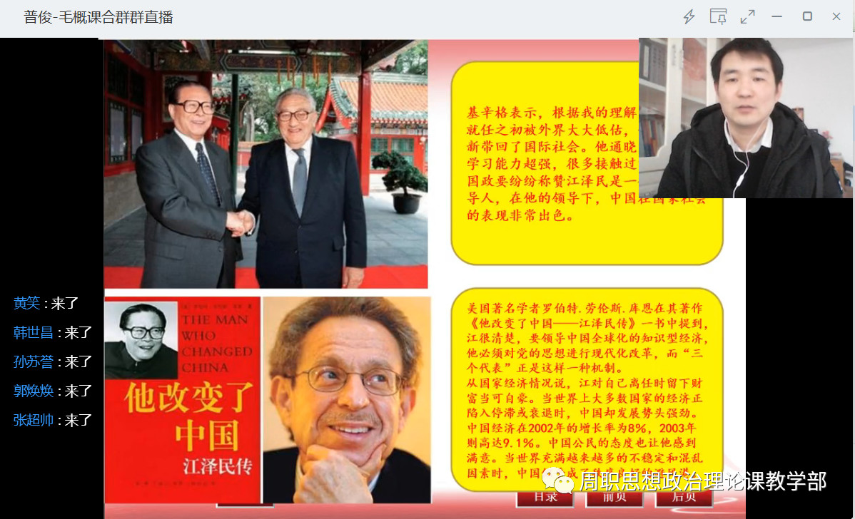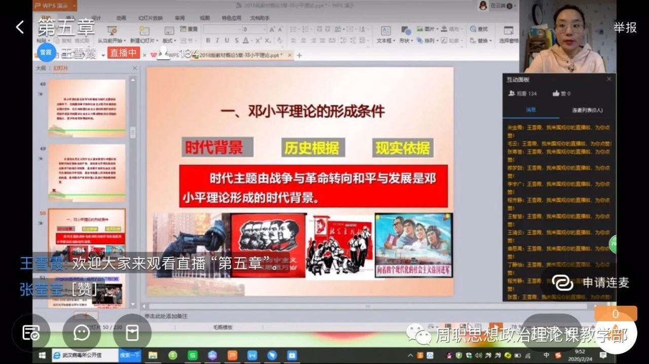 活动开始前,思政课教师通过微信、QQ等方式对网络集体备课、授课内容、授课方式等问题进行了探讨。老师们充分利用本次抗“疫”阻击战中大量鲜活的真实事例,作为思政课教学素材,开展相关主题教育活动,引导学生坚定“四个自信”、做到“两个维护”,传递战“疫”正能量。