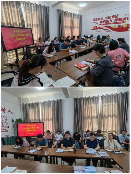 范文婷副院长传达了河南省教育厅文件精神,布置安排了心理健康教育课题项目、思想政治理论课教学资源的申报工作。许华锋副院长传达学校关于学习贯彻习近平新时代中国特色社会主义思想主题教育工作会议的精神,张文华主任和常瑞华主任分别对新学期教学、心理咨询相关工作做具体安排。