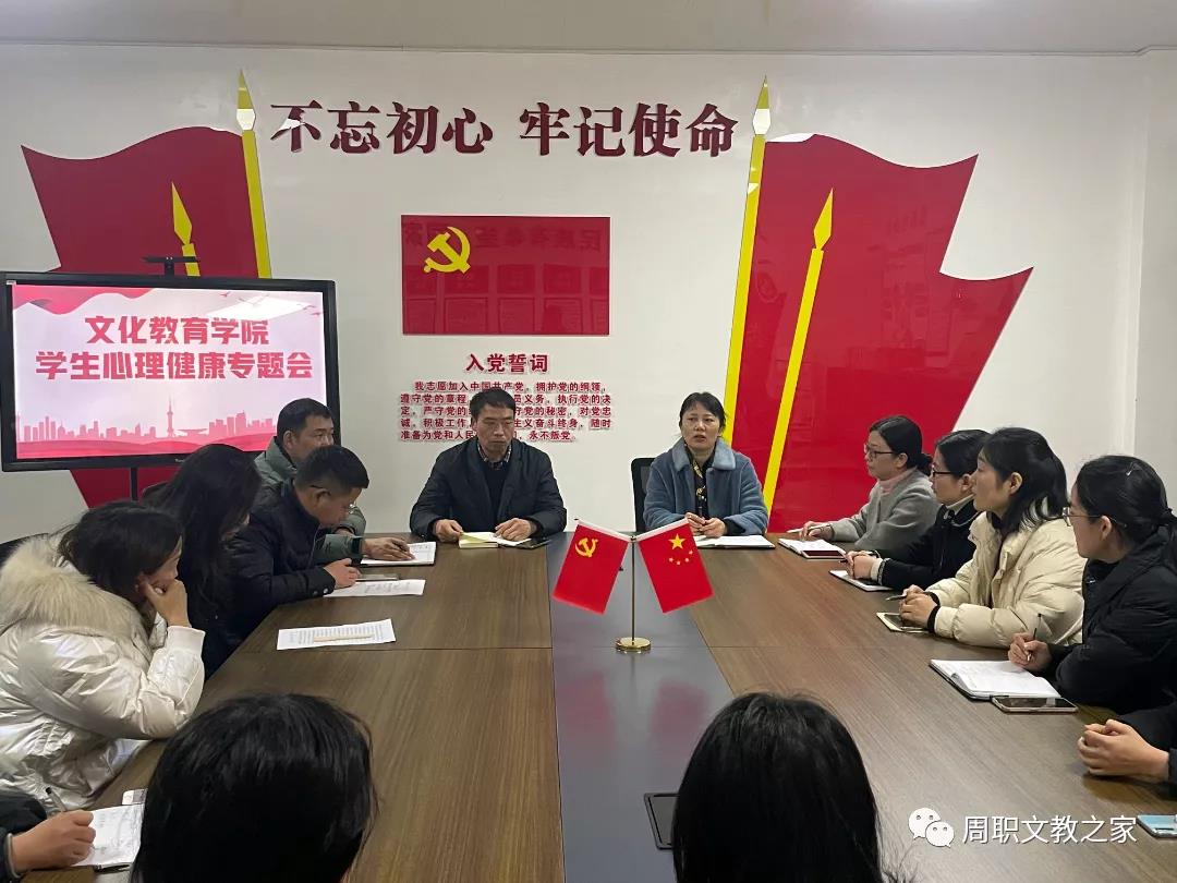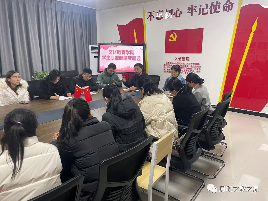 为进一步贯彻全国高校学生心理健康教育工作推进会精神,布置研判贝博官网学生心理健康工作,12月6日下午,文化教育学院在党建活动室召开了学生心理健康工作专题会议。文化教育学院党总支书记唐文杰、副院长白发国及全体辅导员参加,心理指导中心主任耿润应邀参会。