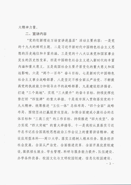 周口职业技术学院“党的创新理论万场宣讲进基层”活动实施方案