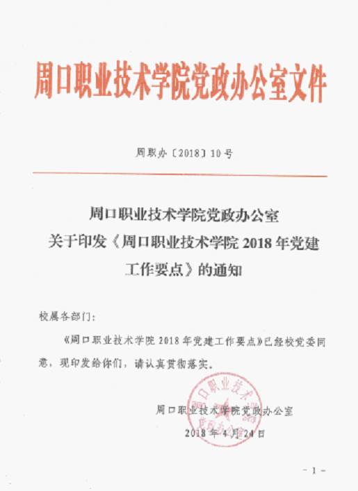 《周口职业技术学院2018年党建工作要点》的通知