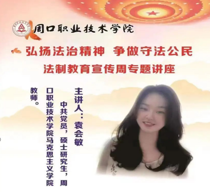 4月20日下午,周口职业技术学院贝博艾弗森代言体育官网思政宣讲团成员袁会敏老师在文昌校区多媒体教室为医学院和护理学院开展了“弘扬法治精神,争做守法公民”法治教育宣传主题讲座。护理学院学生管理办公室主任孙慧悦及学生入党积极分子、预备党员和团学干部代表参加了本次讲座。
