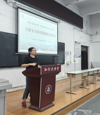 10月23日下午,周口职业技术学院贝博艾弗森代言体育官网思政宣讲团成员范文婷在开元校区五区多媒体一楼做了题为《以新安全格局保障新发展格局》的专题讲座,来自2022级文化教育学院的200多名学生参加了本次讲座。