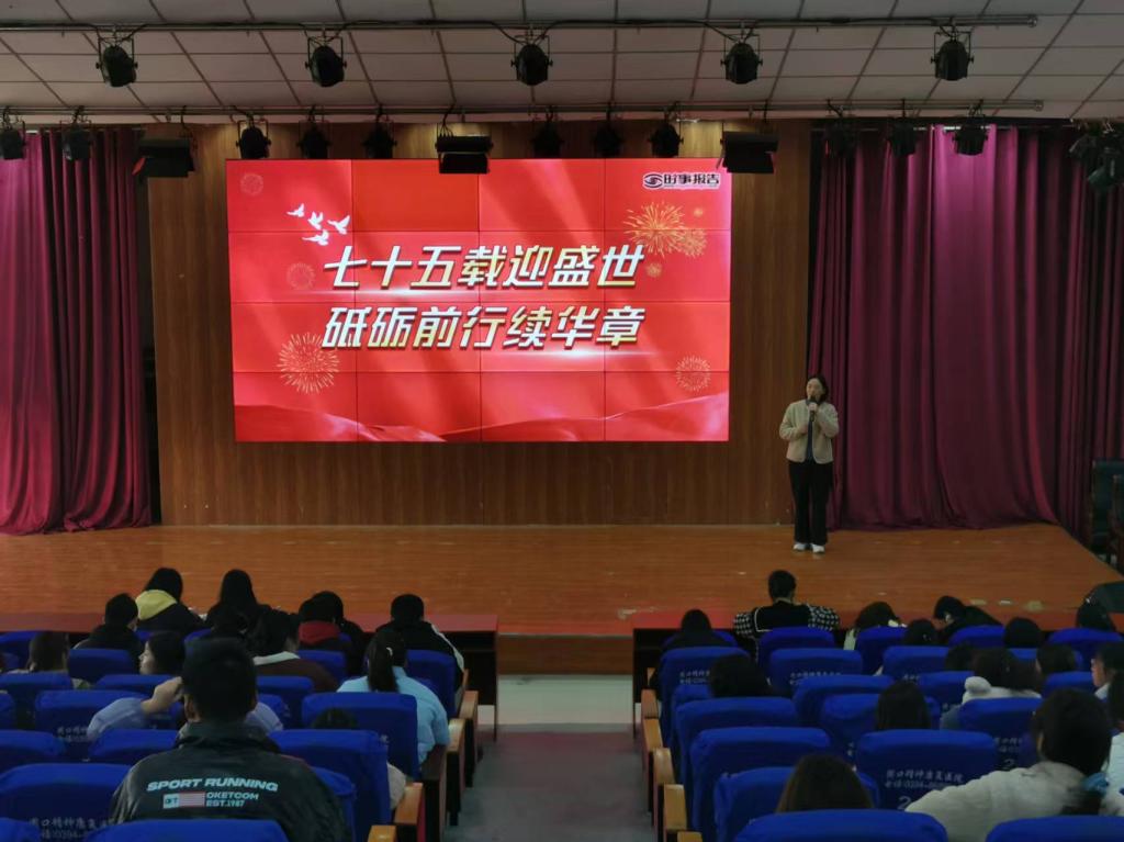 11月28日下午,贝博艾弗森代言体育官网老师张丽丽在文昌校区报告厅以《七十五载迎盛世 砥砺前行续华章》为题,向24级护理学院专业的学生进行了讲座。