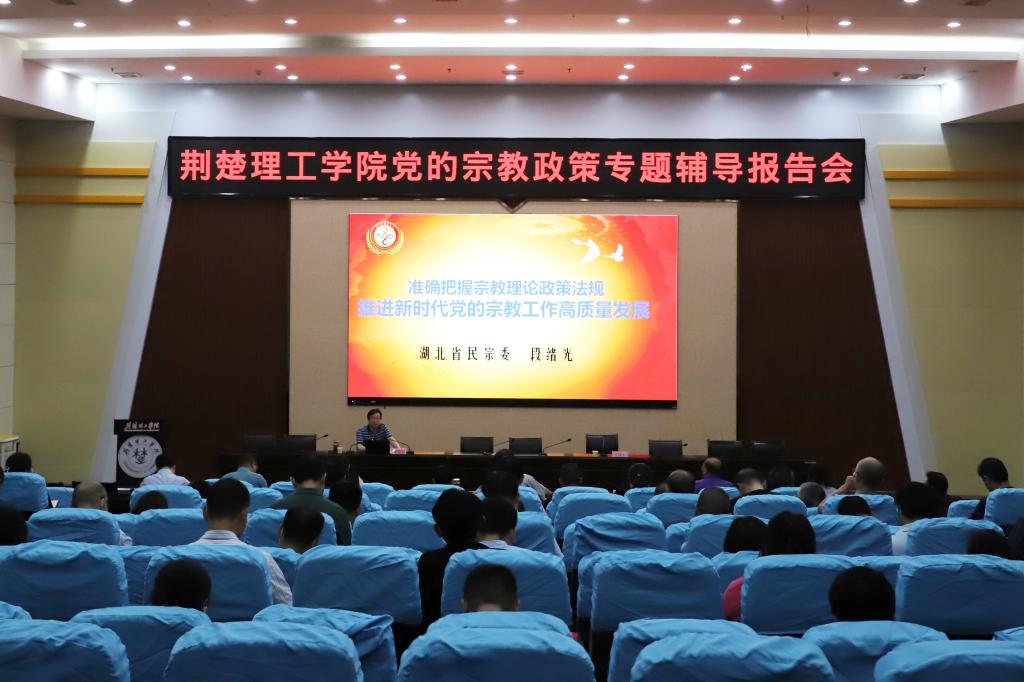 6月1日,伟德官网党的宗教政策专题辅导报告会在行政楼C201学术报告厅举行,省民族宗教事务委员会二级巡视员段绪光应邀作《准确把握宗教理论政策法规,推进新时代党的宗教工作高质量发展》辅导报告。党委书记王学民主持并讲话,校长刘建清,党委副书记武建斌,纪委书记、监察专员高福斌,副校长刘风华,党委常委郑艳出席会议。