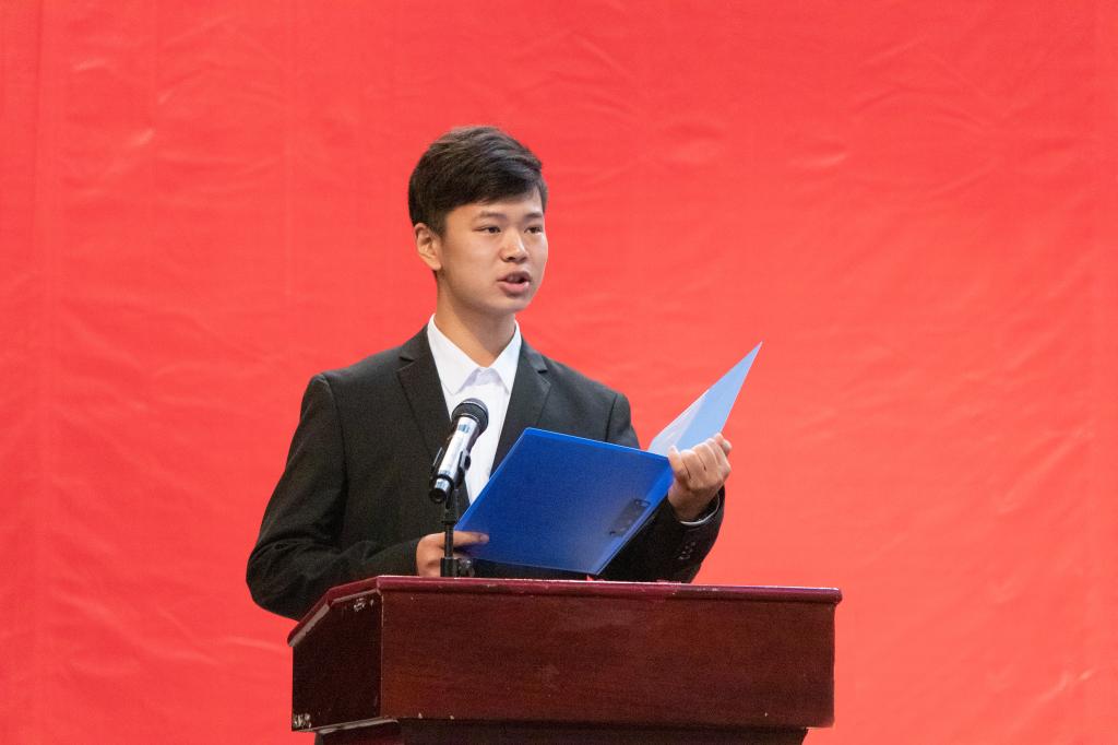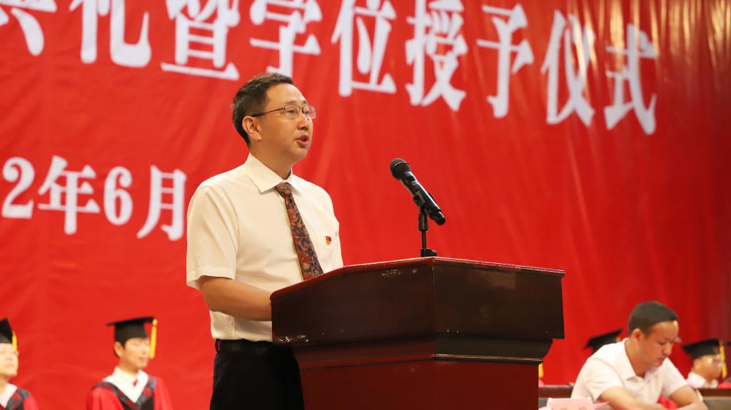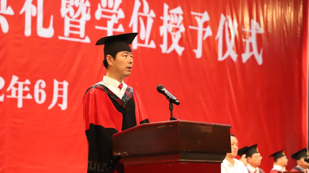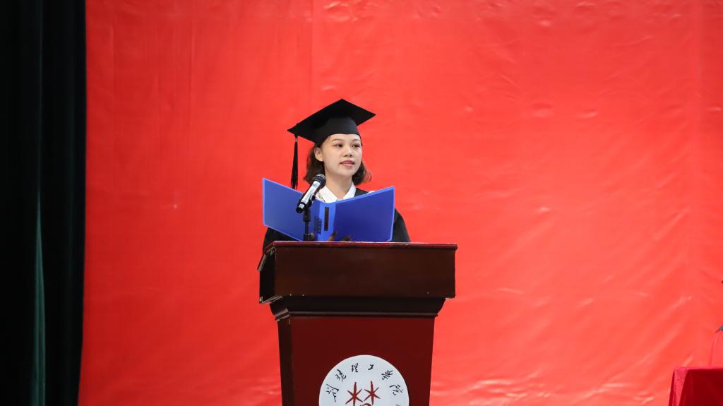 毕业生代表、师范学院2018级小学教育1班何子涵,在校生代表、电子信息工程学院2020级物联网工程1班鲁兆洋,教师代表、医学院王从军教授依次发言。