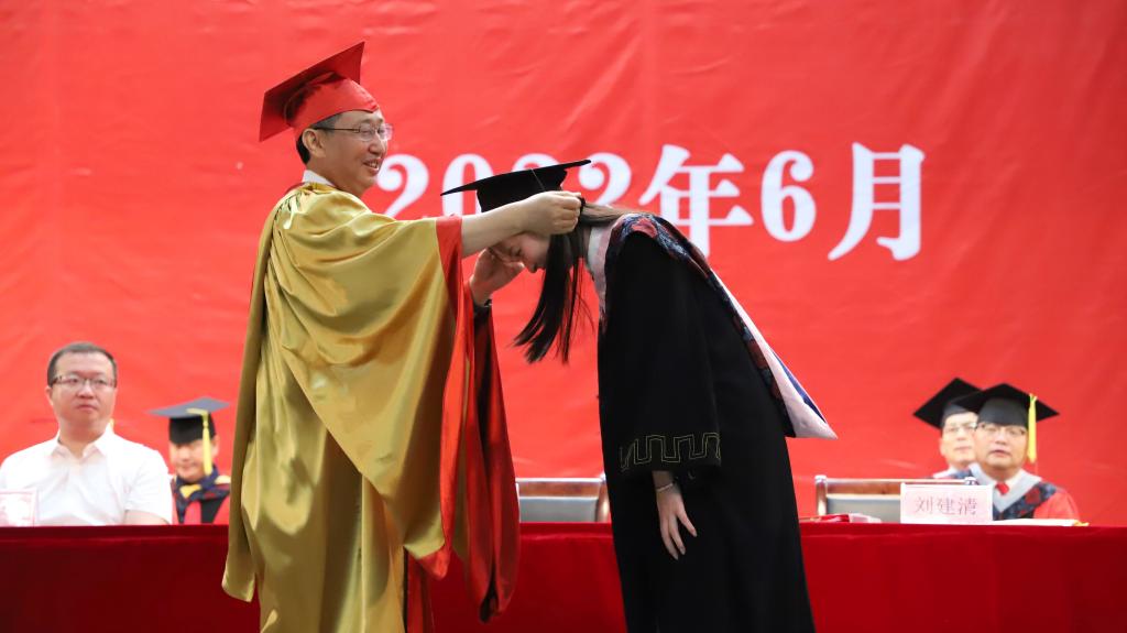 校长、学校学位委员会主席刘建清发表热情洋溢的讲话并为获得学士学位的毕业生代表拨穗正冠、颁发学士学位证书。全体校领导为优秀毕业生颁奖。