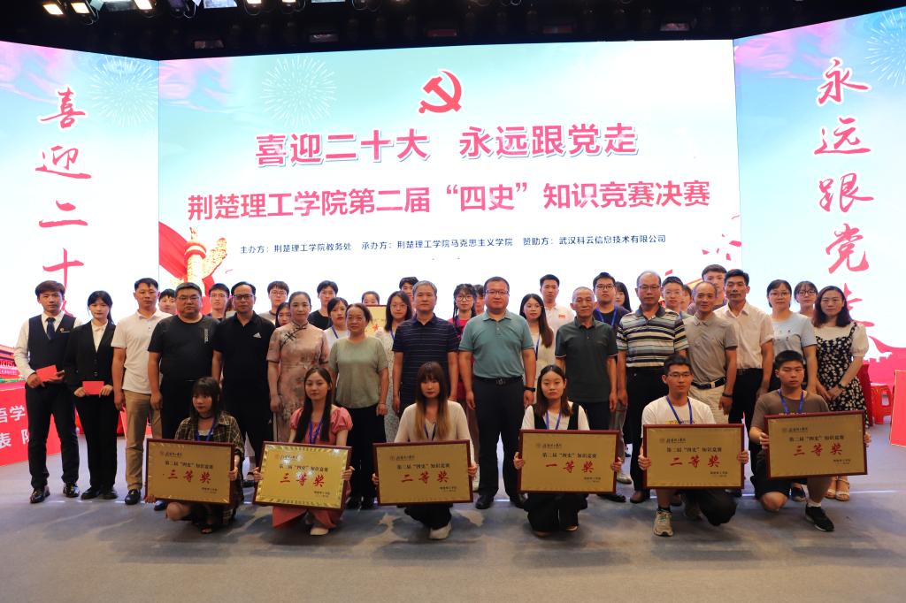 以史鉴今、资政育人。6月14日,伟德官网在荆楚理工会堂举办“喜迎二十大、永远跟党走”为主题的第二届“四史”知识竞赛决赛,回顾中华民族从站起来到富起来到强起来的苦难辉煌历程,讴歌党的丰功伟绩,抒发全校师生对党的敬仰之情。党委副书记武建斌出席并致辞。来自12个学院的12支代表队参加比赛。