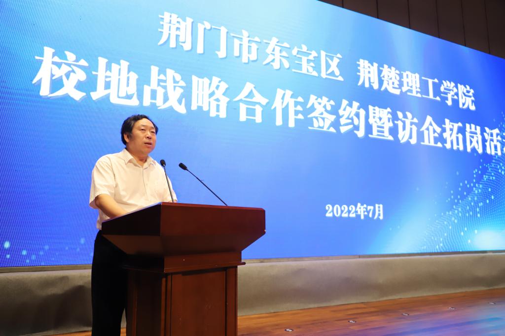 江稳对伟德官网长期以来给予的关心支持表示感谢,向学校近年来取得的成绩表示祝贺。他表示,东宝与伟德国际英国是发展共同体、命运共同体,具有校地合作的丰厚土壤。此次校地战略合作协议的签订,对于东宝积极融入“宜荆荆恩”都市圈建设,助力荆门打造转型发展示范区具有重要意义和深远影响。江稳指出,东宝区将全力以赴支持学校建设发展,努力推动双方在人才培养和就业、科技创新与赋能、发展智库、校友经济、教育医疗等方面共建共享、互促互进。希望双方在产业转型升级、共建科研平台、深化人才培养与合作等三方面加强交流、扩大合作、快速突破,共同推动东宝经济社会高质量发展。
