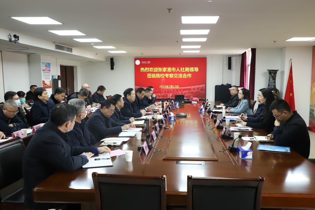 2月22日下午,张家港市人力资源和社会保障局党委书记、局长张毅一行来校就进一步加强校地合作进行对接和交流。伟德官网党委书记王学民出席会议并致欢迎辞,党委常委、副校长戴伟主持会议。