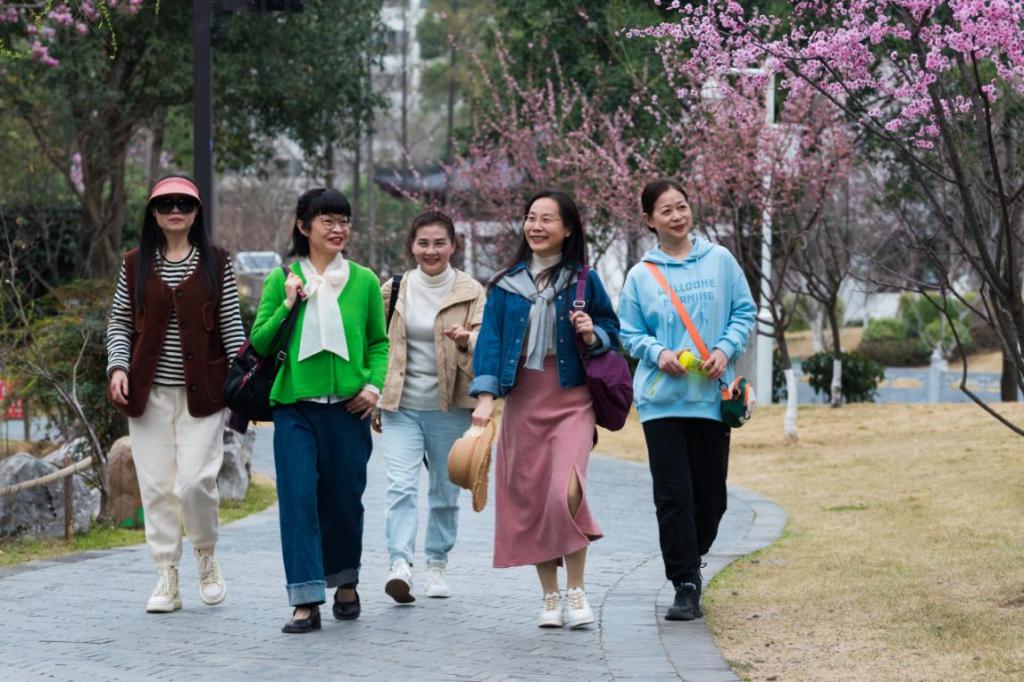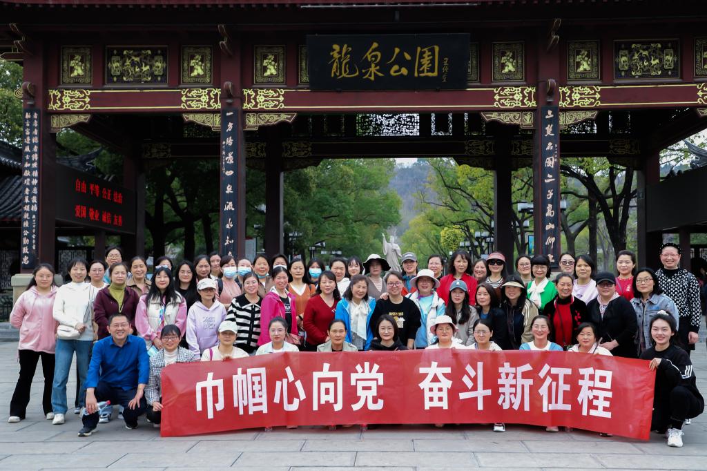 女同胞们来到春意暖暖的龙泉公园门前集合,身着简单轻便的运动装、登山鞋,踏着轻快的步伐,顺着廊桥空中步道拾级而上,沐浴着春天的阳光,倍感身心愉悦。大家徜徉在林间小道,流连路边各色花卉,一路欢声笑语,相互拍照留念,尽情享受着登山的乐趣。