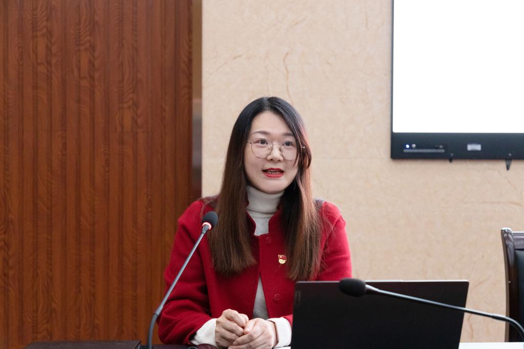 潘淼老师以“脚踏实地、不懈努力,梦想在前、路在脚下”为题,以老子《道德经》中经典名句引入,强调德在学习、生活等方面的重要性,讲述了她从小就梦想成为一名教师,并为之不断努力的经历。在实现梦想后,她坚守自己的教育初心,时刻要求自己能够讲“好”课。最后,她鼓励大家要有坚定的理想信念,以德修身,脚踏实地走好每一步。