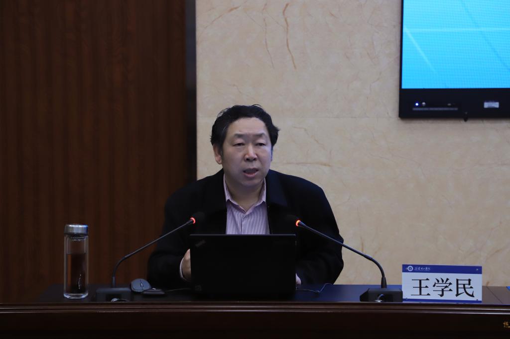 王学民指出,习近平新时代中国特色社会主义思想逻辑严密、内涵丰富,生动体现了理论与实际的结合、世界观和方法论的统一,闪耀着辩证唯物主义和历史唯物主义的光辉,必须坚定将习近平新时代中国特色社会主义思想作为指导和推动学校事业发展的根本遵循和行动指南。