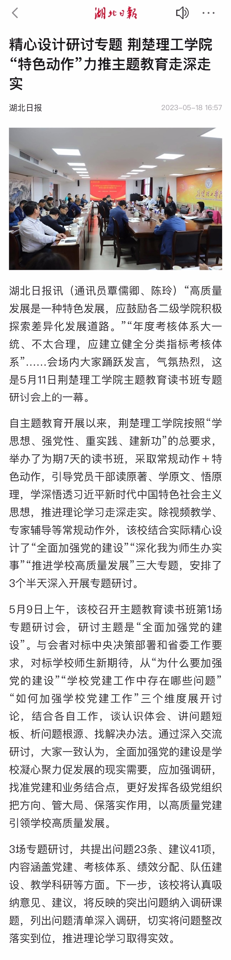 《湖北日报》报道伟德官网以高质量读书班推动主题教育走深走实