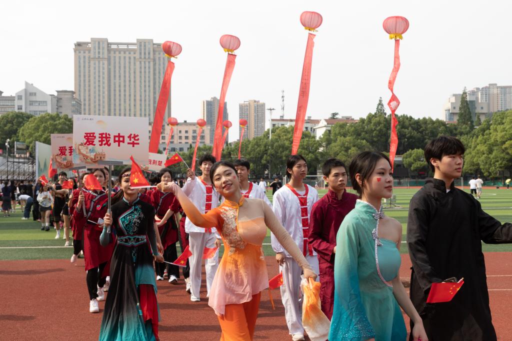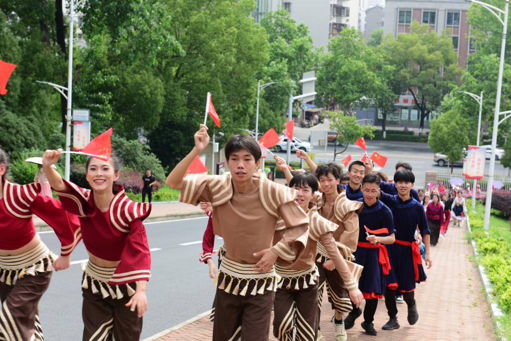 随着音乐响起,大家将手中的国旗高高举起,不停挥舞,齐唱《爱我中华》,以激扬的青春朝气,表达着对党对祖国的真切祝福和热爱之情,现场瞬间变成一片红色海洋。