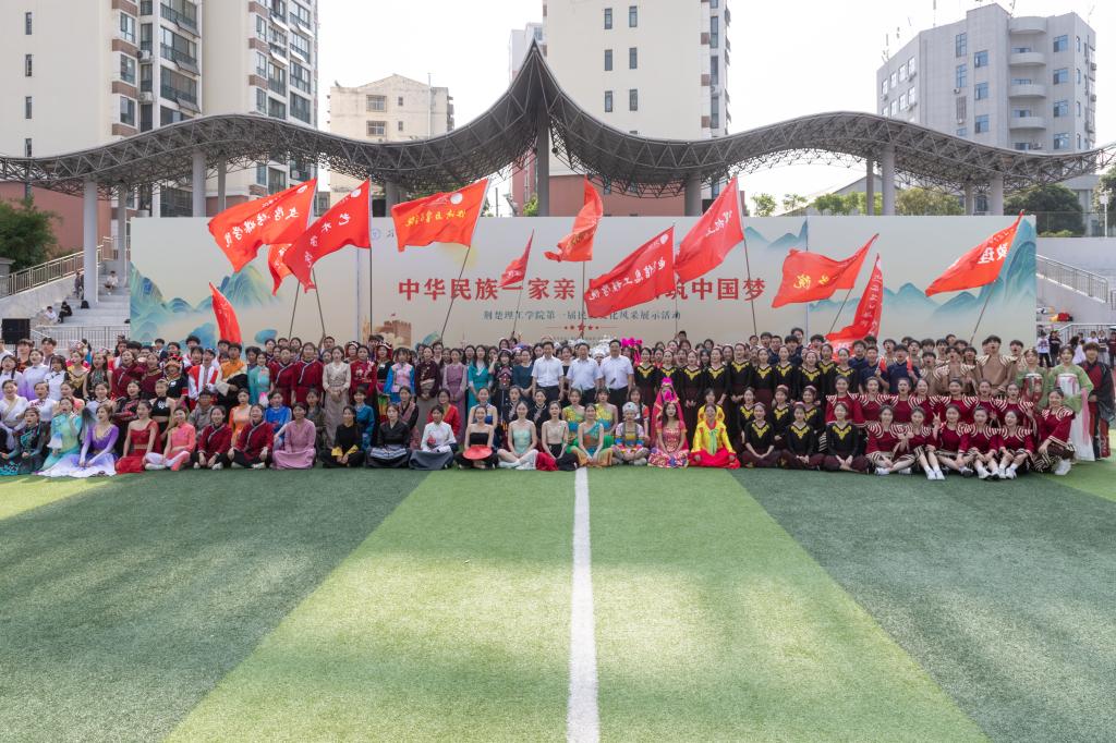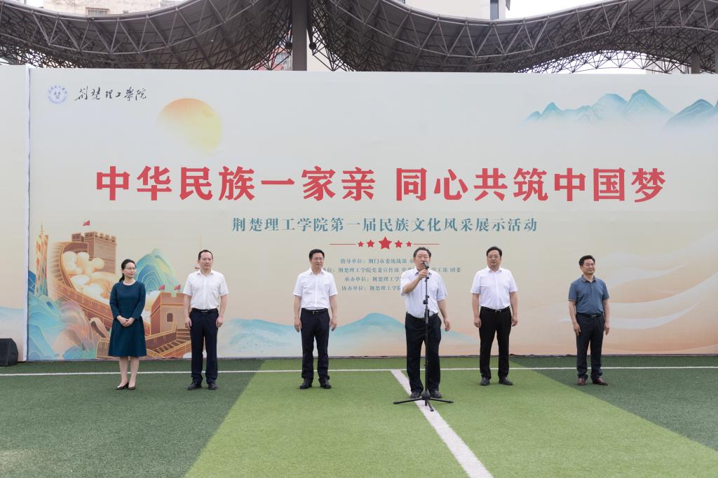 为深入学习宣传贯彻党的二十大精神,铸牢中华民族共同体意识。5月20日,伟德官网第一届“中华民族一家亲 同心共筑中国梦”民族文化风采展在文园操场举行。荆门市委常委、统战部部长刘振军,校党委书记王学民、副校长刘风华,党委常委、宣传部部长郑艳出席本次活动。市委统战部、市民宗委相关负责人参加活动。