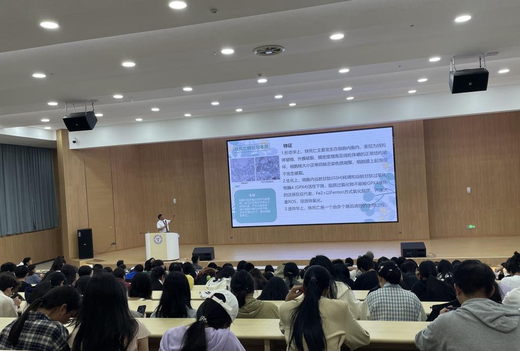 夏正远教授以《铁死亡及其对糖尿病心肌缺血再灌注损伤的影响》为题,从心血管疾病的流行病学特征带入课题,由研究假设和背景逐渐引出15-F2t-isoprostane与心肌缺血-再灌注损伤机制的作用关联,结合自己多年来的研究成果和自1972年以来全球科学家对细胞死亡的研究历程,提出了铁死亡在人体器官、组织损伤发生发展中发挥的重要作用。深入浅出的阐述了铁死亡的特征与本质,揭示了铁死亡的多种调控因素,详细介绍了铁死亡的研究方法和现阶段成果,激发了大家对铁死亡的研究兴趣,为从事相关研究领域的老师提供了研究切入点。讲座尾声,夏正远教授交流了高影响因子论文发表过程中的注意事项,分享了研究团队合作精神。