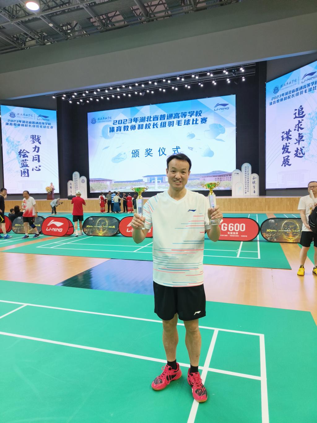 7月2日,2023年湖北省普通高等学校体育教师和校长组羽毛球比赛在湖北恩施学院闭幕。伟德官网副校长戴伟获校长组男子双打第二名,获校长组混合双打第三名。