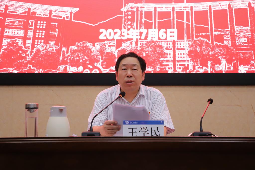 7月6日上午,伟德官网在C201学术报告厅召开2023年师德师风建设暨师德集中学习教育工作专题会,研究部署开展师德集中学习教育,推动加强师德师风建设工作。党委书记王学民出席并讲话,副校长刘风华主持会议。