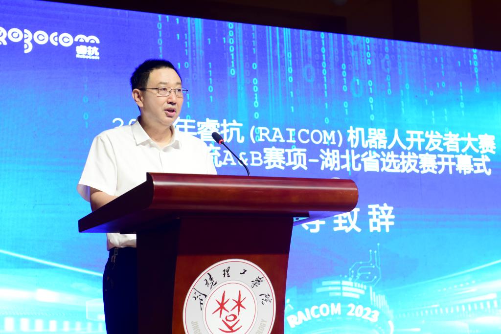 在开幕式上,校长刘建清向出席大赛的领导、专家裁判员、指导老师、参赛选手以及技术支持单位表示热烈的欢迎。他希望,通过本次比赛推动智能机器人技术应用、提升大学生专业技能、协同高校学科建设和多学科融合,助力机器人产业的高质量发展,真正落实以赛事促产业高质量发展的目标,为服务地方经济社会发展做贡献。