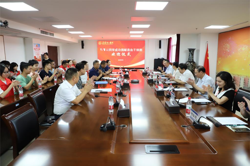 王学民向王虎同学载誉归来表示热烈祝贺,他指出,王虎克服种种困难捐献造血干细胞的行为,充分体现了我们当代大学生的责任与担当精神,以及为社会为他人无私奉献的精神。他希望,全校要以王虎为榜样,关心社会、关爱他人,热心公益事业,传承志愿服务精神。同时,他对市红十字会对伟德官网的支持和帮助表示感谢,并希望双方进一步加强合作与互动,助力伟德官网公益事业发展。
