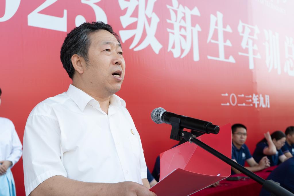 王学民指出,军事训练是大学新生第一战略课,认真参加军训、树牢国防观念是当代大学生的历史使命、责任担当、义务所在。军训期间,全体参训学生以饱满的热情、不畏艰难的意志积极参训,牢固掌握了基本的军事理论知识和技能,强健了体魄,激发了爱国主义热情。他希望,全体2023级新生们在今后的学习和生活中继续发扬军训中顽强拼搏、刚毅果敢的精神,以军训为起点,坚定理想信念,勇担时代重任;坚持刻苦学习,发扬不怕苦、不怕累的精神,成为有本领、能干事的有为青年;坚守涵养情操,修炼自身德行,塑造内在品格,将拳拳爱国之心,化为铮铮报国之行,扣好大学第一粒扣子,踏踏实实完成学业,认认真真练就本领,努力成就更加优秀的自己!