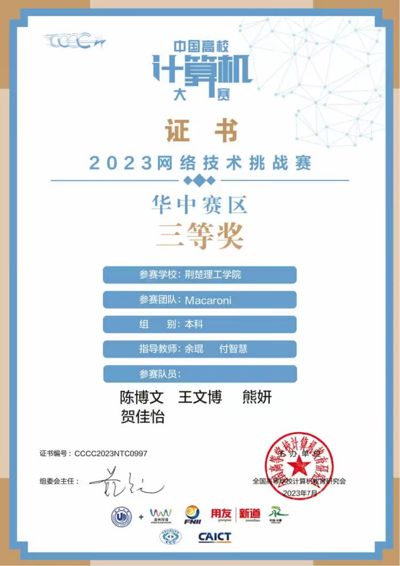 近日,2023年第八届中国高校计算机大赛(China Collegiate Computing Contest,简称C4)网络技术挑战赛总决赛落下帷幕。伟德官网两支参赛队伍分别获得全国三等奖、华中赛区三等奖。