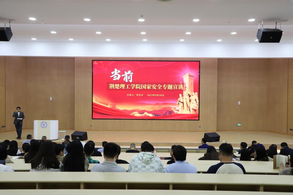 荆门市国家安全宣讲员围绕宪法、国家安全法、反间谍法等内容,结合实践中的真实案例,详细阐述了国家安全的基本内涵和面临的新形势,就涉外交往安全防范以及隐蔽斗争面临的总体形势进行宣讲。希望广大师生在工作、学生和生活中要保持警惕之心,增强安全意识,牢固树立总体国家安全观,切实履行好公民应有的责任担当。