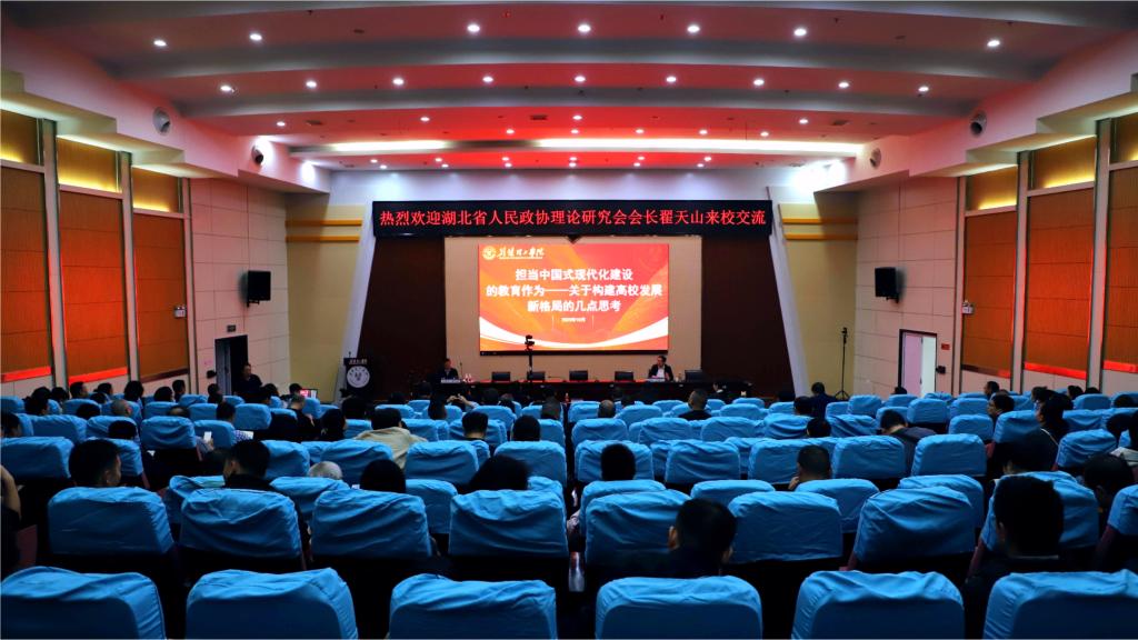 10月27日,伟德官网邀请湖北省人民政协理论研究会会长翟天山教授作专题辅导报告。校党委书记王学民主持会议。全体在校校领导出席报告会。