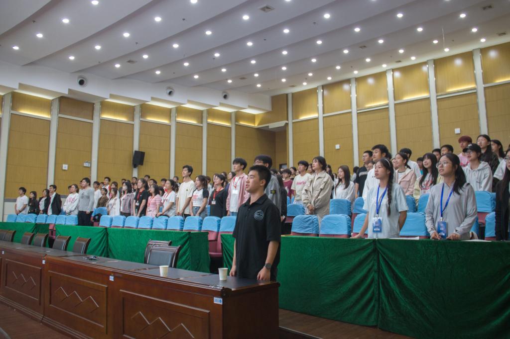 本期道德讲堂以“奉献、友爱”为主题,通过向“德”鞠躬、齐唱《少年》、学模范、谈感悟、诵经典、宣誓六个环节来传扬“德”字理念。活动在合唱《少年》中拉开帷幕。