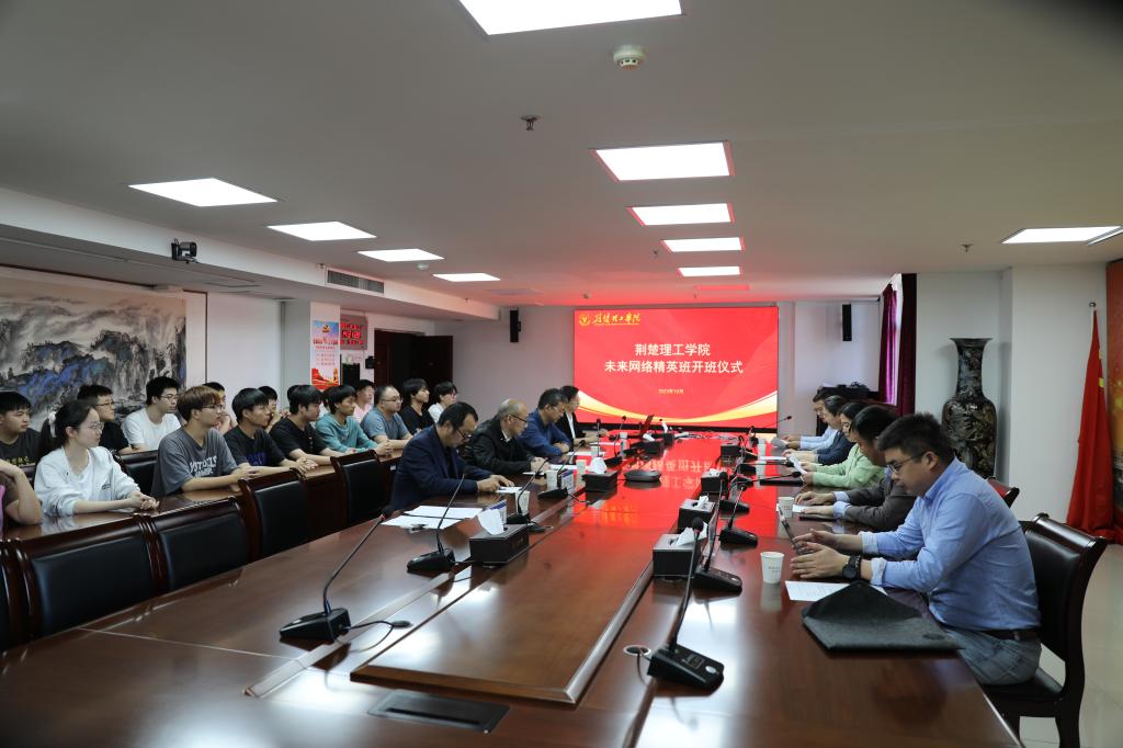 近日,伟德官网首届未来网络精英班开班仪式在行政楼A406举行。副校长曹甜东出席开班仪式并讲话。江苏省未来网络创新研究院团队总监魏亮、校企合作大区总监李剑,伟德官网计算机工程学院负责人及精英班全体师生出席了开班仪式。