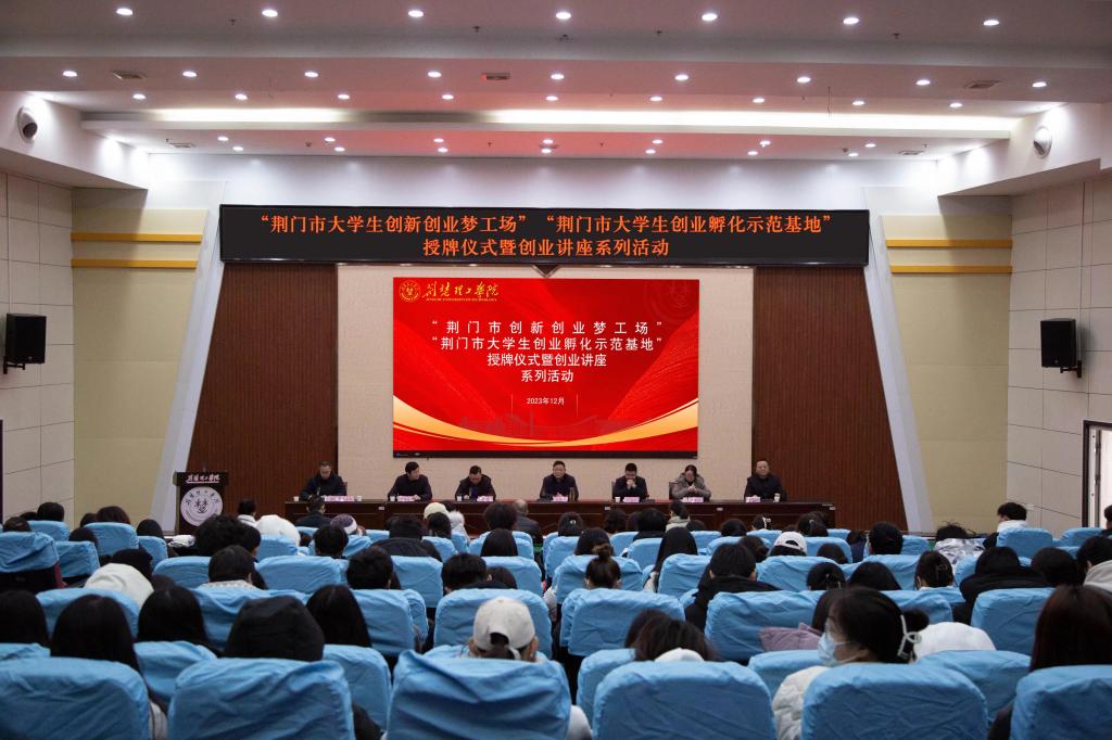 荆门市劳动就业管理局、荆门市人才服务局相关领导为基地授牌。仪式结束后开展了创业讲座和创业沙龙活动。