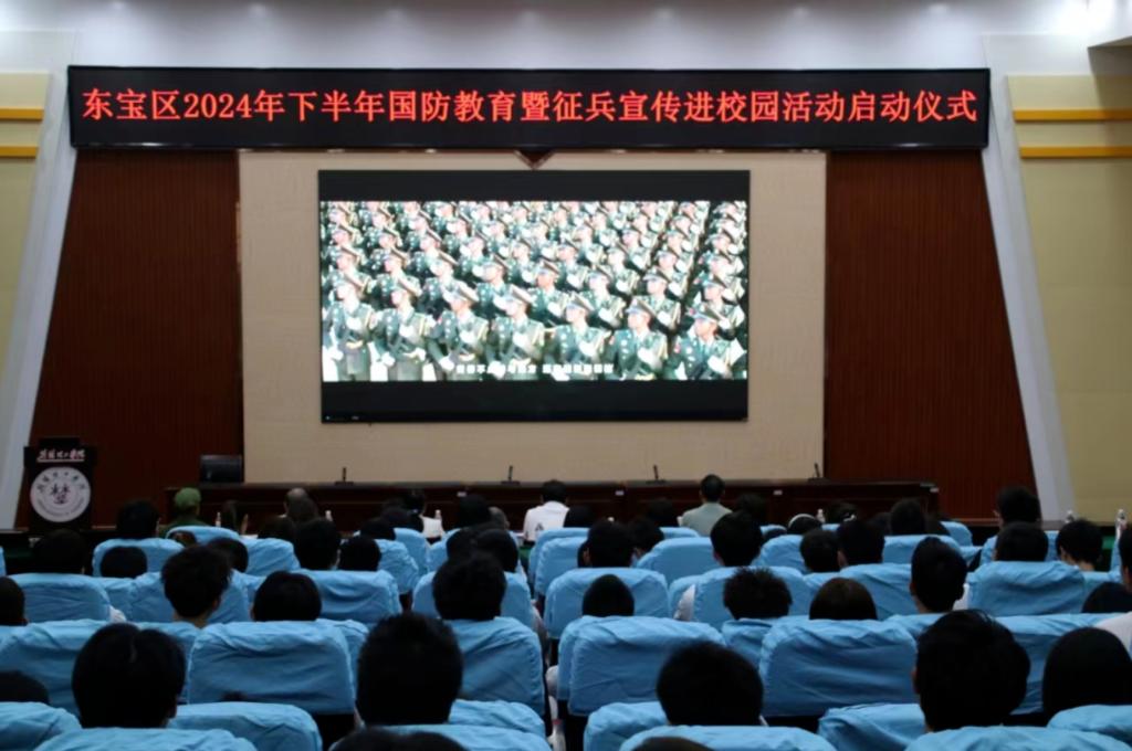 5月31日下午,东宝区2024年下半年国防教育暨征兵宣传进校园启动仪式在伟德官网行政楼C201学术报告厅举行。校党委常委、宣传部部长郑艳,区委常委、常务副区长杨晓勇出席启动仪式。区人武部上校政治委员何宝平,东宝区英模赵明金以及伟德官网师生代表300余人参加活动。