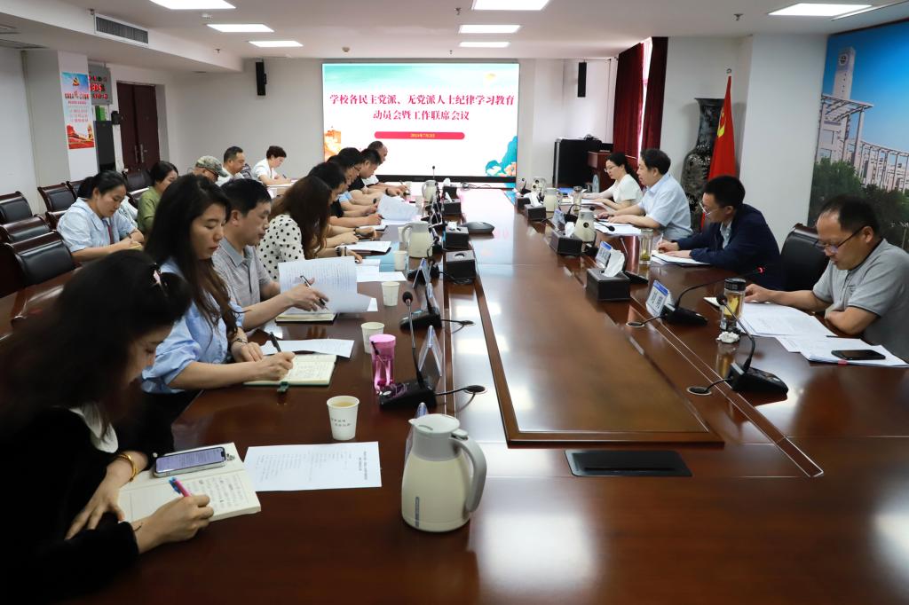 会议传达学习习近平总书记在二十届中央纪委三次全会上发表的重要讲话《深入推进党的自我革命,坚决打赢反腐败斗争攻坚战持久战》,省委统战部关于支持各民主党派、无党派人士开展纪律学习教育的通知要求,并对学校民主党派、无党派人士纪律学习教育工作进行动员部署。