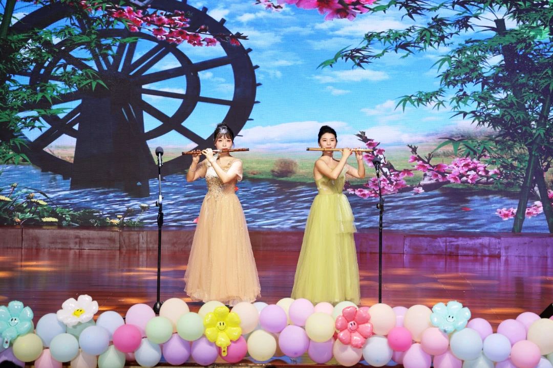 随后,台湾大学生演唱的歌曲《小幸运》《歌声中的记忆》引燃全场,台下掌声、欢呼声不断。川剧《变脸》演绎了台湾青年对祖国优秀传统文化的传承,舞蹈《呐山呐海那鲁湾》展示了台湾原住民阿美族传统歌谣与现代乐舞的巧妙融合,洋溢着台湾大学生的蓬勃朝气。荆楚学子的古筝合奏《战台风》、笛子二重奏《跑旱船》等系列民乐演奏,旋律铿锵、节奏有力,将晚会现场气氛推至高点。