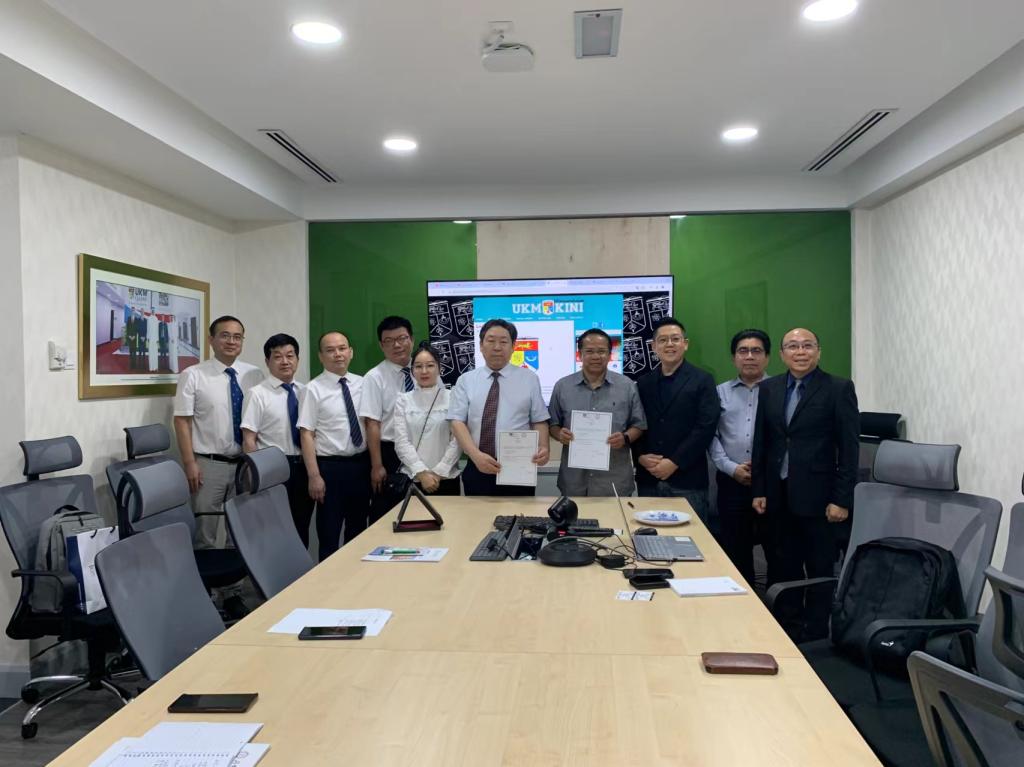 在马来西亚国立大学,代表团与学校国际交流主任拿督Datuk Muhammad,马来西亚大学联盟主席Dato Seri James Wong,共同探讨了师生互访、优势学科学生联合培养、博士深造等领域的合作,并签订两校合作协议。