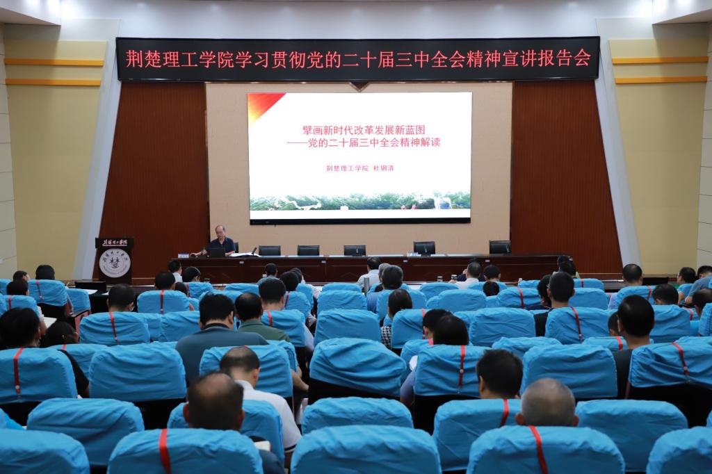 8月30日,伟德官网学习贯彻党的二十届三中全会精神宣讲报告会在C201学术报告厅举行。荆门市委宣讲团成员,伟德官网马克思主义学院院长杜钢清教授作宣讲报告。校党委书记王学民主持报告会并讲话。全体在校校领导参加会议。
