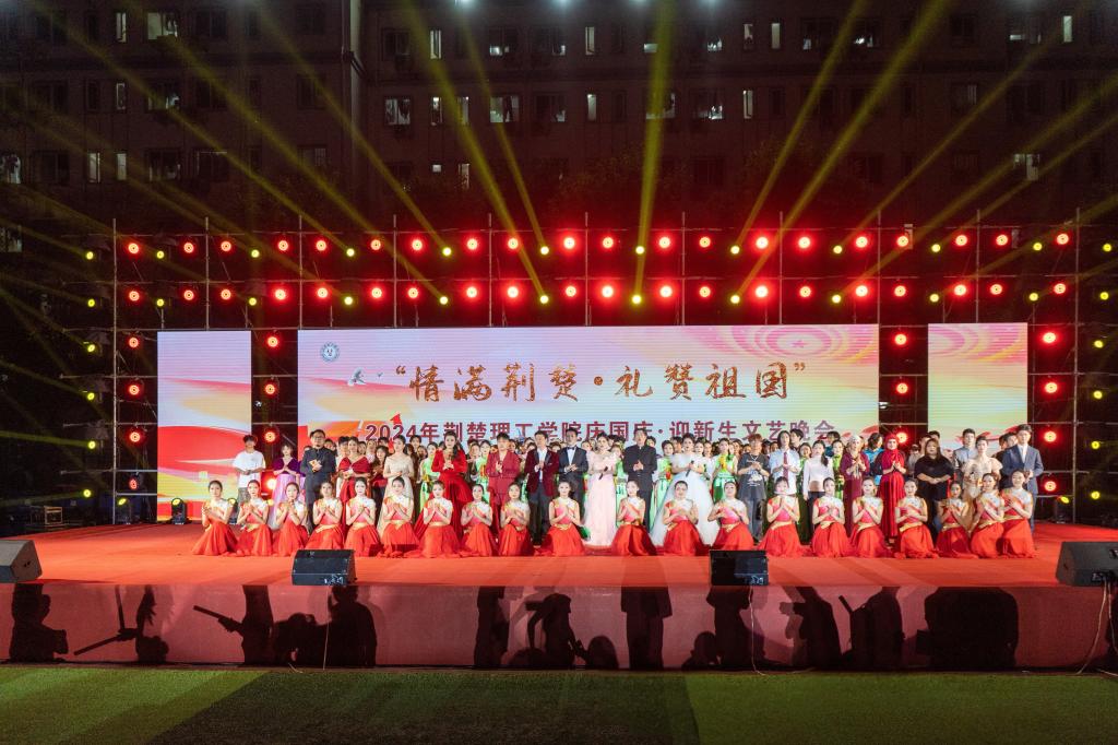 9月26日晚,伟德官网“情满荆楚,礼赞祖国”2024年庆国庆、迎新生文艺晚会在学校二号运动场举行。荆门市委副书记、市委政法委书记赵少莲,校党委书记王学民,副校长曹甜东,党委常委、宣传部部长郑艳,湖北日报、荆门市文化和旅游局、武警荆门支队、学校各单位负责人,校友以及2024级4000余名师生现场观看演出。