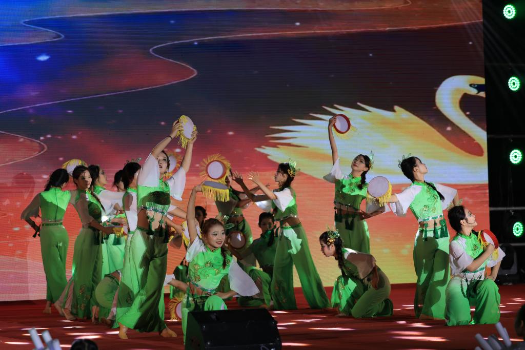 裙角飞扬,舞姿翩跹,舞蹈《稻花香里说丰年》一幅幅温馨宁静的田园风光画卷显现,随着音乐的起伏,曼妙的舞姿勾勒出丰收的喜悦与欢腾,展现了人们对美好生活的向往。一曲女声小组唱《好大一棵树》,深情地献给所有乐教爱生、甘于奉献的老师们,在演唱中表达了对他们崇高师德的无尽的敬仰与感激之情。音诗画《青春的对白》,舞蹈《瑰葭路》,器乐合奏《吉祥天鼓》等节目精彩呈现。现场掌声与欢呼声不断,青春的气息在歌舞中肆意飞扬。