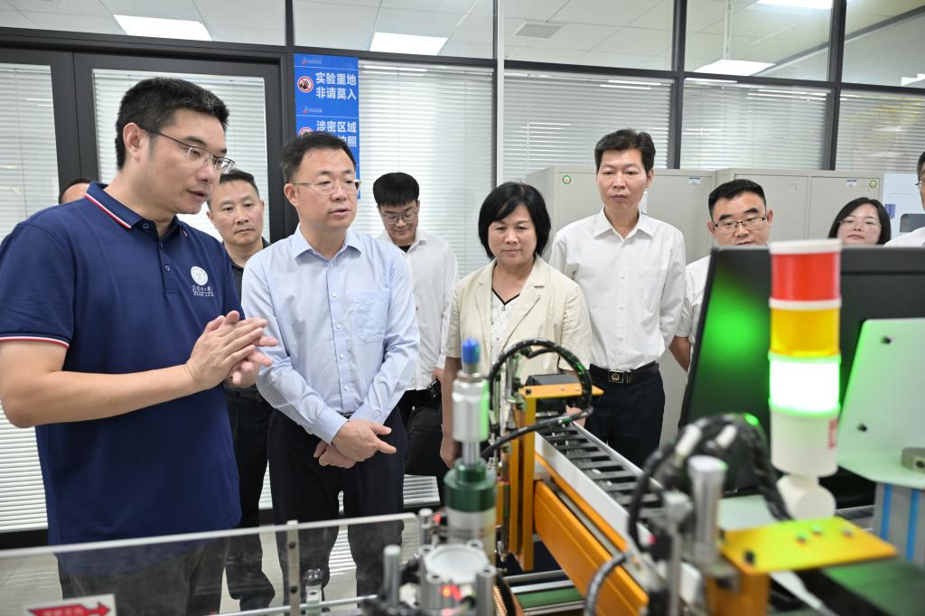 调研组一行对伟德官网特色花卉生物育种湖北省工程研究中心、高效精密加工技术研究所和天腾重机企校联合创新中心进行调研,各研究所结合专业方向,就专利研发、转移转化、成果运用等方面的工作成果做了详细汇报。