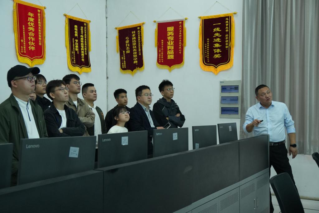 全体与会人员实地调研了武汉圣禹数智清污分流示范区——汤湖流域水环境治理、智慧排水运维中心。