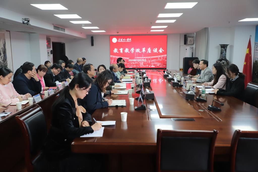 报告会后,在行政楼A406会议室举行教学改革座谈会。各学院院长、分管教学工作副院长围绕教学改革、专业建设、教学成果培育等工作中的难点问题与刘振天教授深入交流,刘振天教授给予了耐心且细致的解答,并对学校今后的教学工作和学科专业建设提供了宝贵的指导和启发。