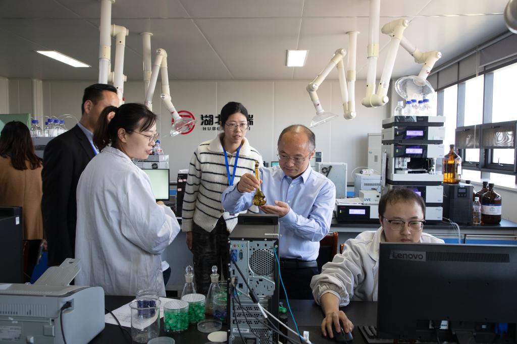 在湖北聚瑞生物科技有限公司实验室,张友兵与企业代表就前期合作项目进行了总结,并对后续开展研究作出了详细安排。双方表示将进一步加强合作,共同攻克技术难题。
