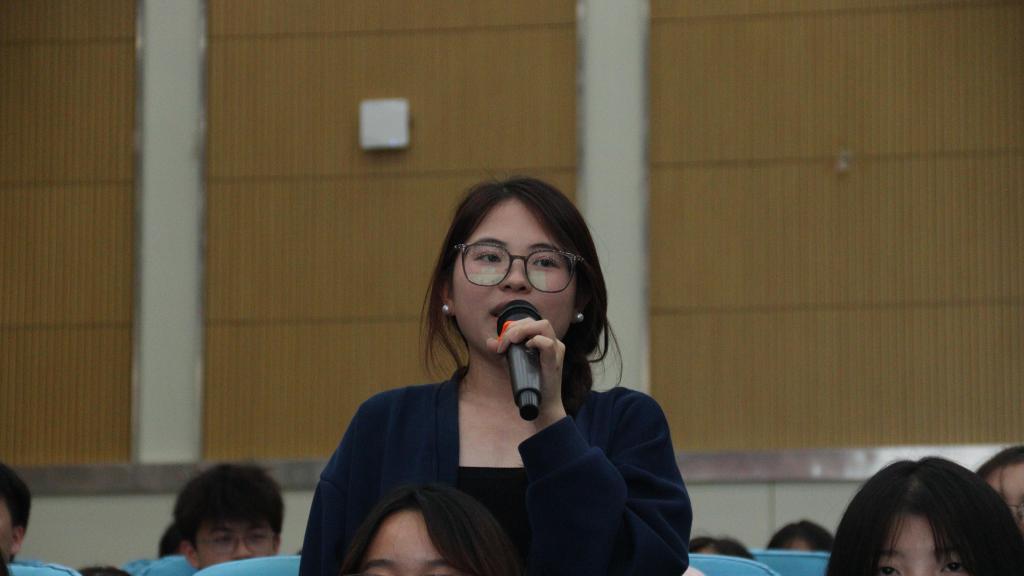 活动现场气氛热烈,同学们积极发言。在谈感悟环节,来自外国语学院的曾雅莉同学表示,作为新时代大学生,我们应当传承和发扬志愿精神,以热情与奋斗的姿态去回馈社会。