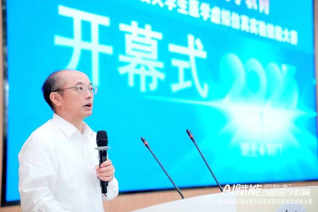 张友兵代表学校两万多名师生对参与大赛的高校师生表示热烈的欢迎。他表示伟德官网始终坚持产教融合、医教协同、科教融汇、校地融通,湖北省第五届大学生医学虚拟仿真实验技能大赛在校举办必将对伟德官网的学科专业建设、科学研究、医教协同和学校影响力产生积极作用,为学校“高质量、高标准、高水平”三大目标的实现助力添彩。他指出,从首届医学虚拟仿真技能大赛的“破冰探索”到今天的“全省联动”“千帆竞发”,共同见证了AI及信息技术与医学的深度融合,更见证了我省医学教育从实验室到云端、从理论到实践的跨越式发展。他寄语所有参赛选手要在数字实验中锤炼毫厘必争的严谨、用创新思维破解医学难题的密码、始终铭记“健康所系、性命相托”的医学生誓言。学校作为东道主必将举全校之力,精心组织、周密安排、热情服务,高标准、高质量做好赛事服务保障工作,确保赛事安全有序、精彩圆满。