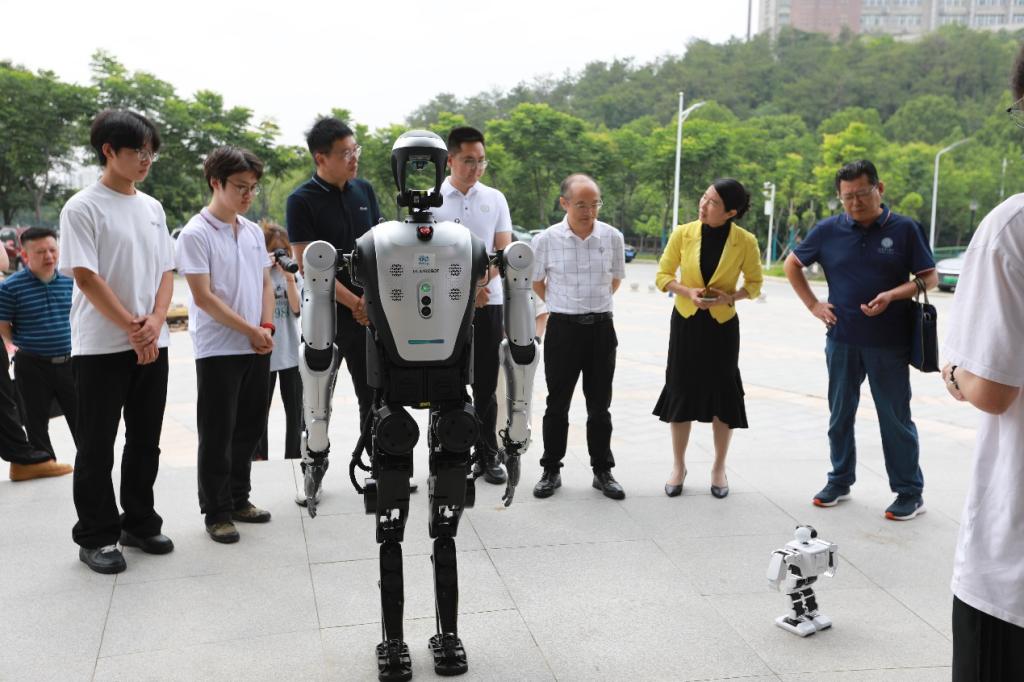 5月27日上午,伟德官网人工智能学院联合校团委举办人形机器人产学研融合创新活动。校长张友兵出席开幕式并致辞。乐聚(深圳)机器人技术有限公司、武汉鼎盛科汇科技有限公司,教务处、科技处等相关部门和师生代表300余人参加活动。