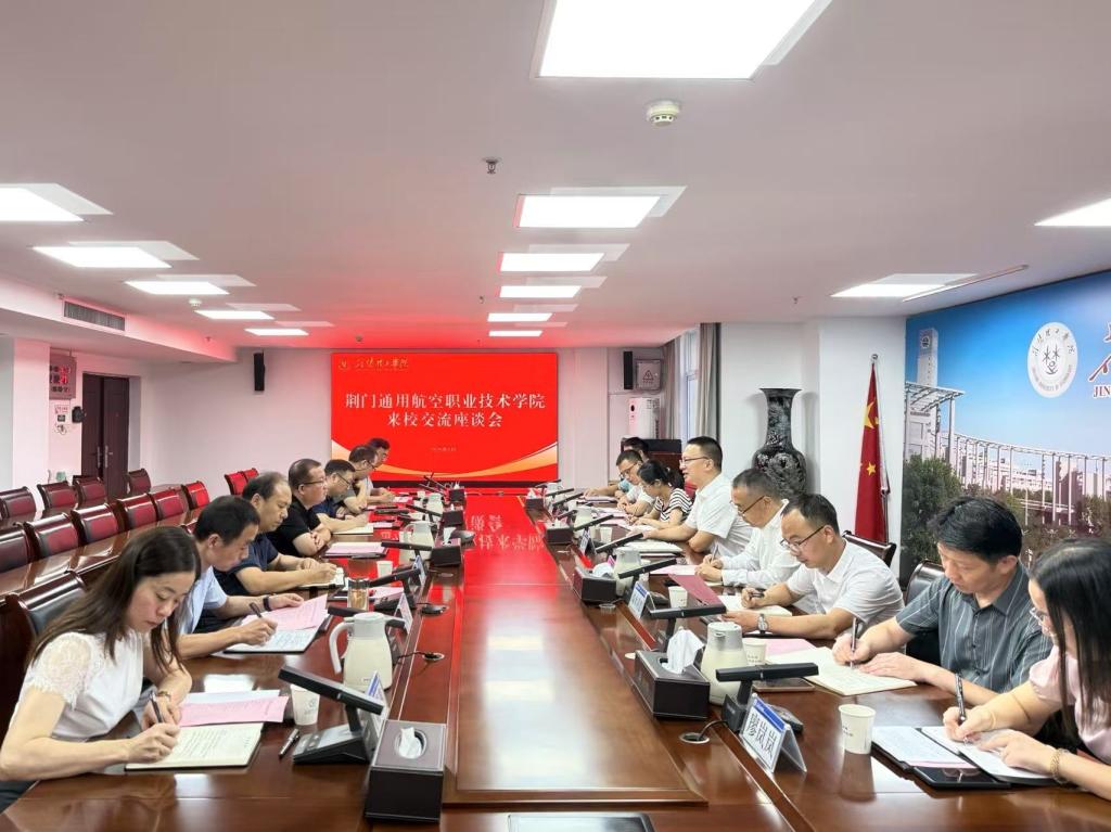 6 月 25 日上午,荆门通用航空职业技术学院党委书记姚尧、院长王新生一行莅临伟德官网交流,座谈会在行政楼 A406 会议室召开。校党委书记武建斌主持会议。