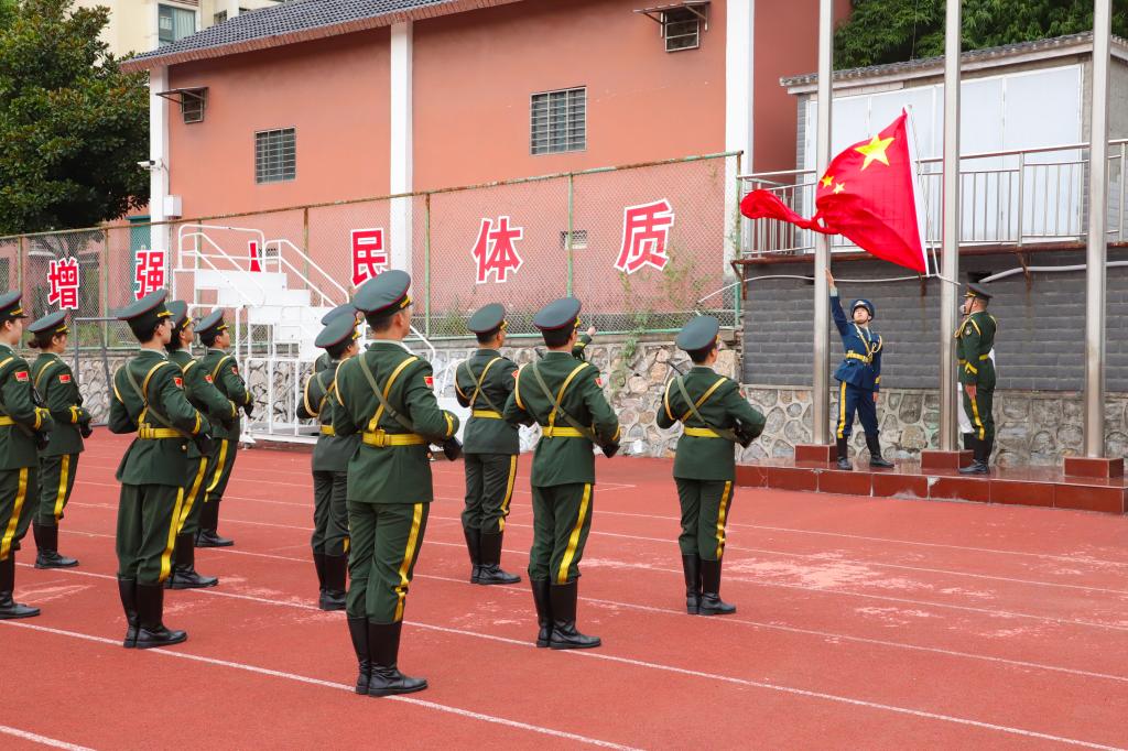 仪式在庄严肃穆的氛围中拉开帷幕,英姿飒爽的护旗队迈着整齐有力、铿锵作响的步伐,护卫着鲜艳的五星红旗走向旗杆。全场师生庄严肃立,齐声高唱国歌,五星红旗在激昂的国歌声中冉冉升起。