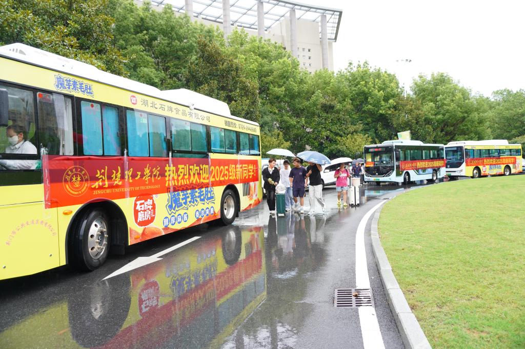 天蒙蒙亮,校园内外便已涌动着忙碌的身影。火车站、高铁站、汽车站的新生接待点前,身着红色马甲的志愿者早早到位,“点对点”接站专属大巴整齐列队,刚抵达的新生一眼就能看到醒目的“荆楚理工”标识;校园里,彩虹门高立,主干道旁的迎新横幅随风舒展,各学院迎新点尽显特色,创意打卡合照手牌、个性签到画板、满载育人成果的宣传展板依次排开,红马甲志愿者穿梭在人群中,忙碌的身影与暖心的问候交织,成为校园里最亮丽的风景线,让初来乍到的新生倍感温暖。