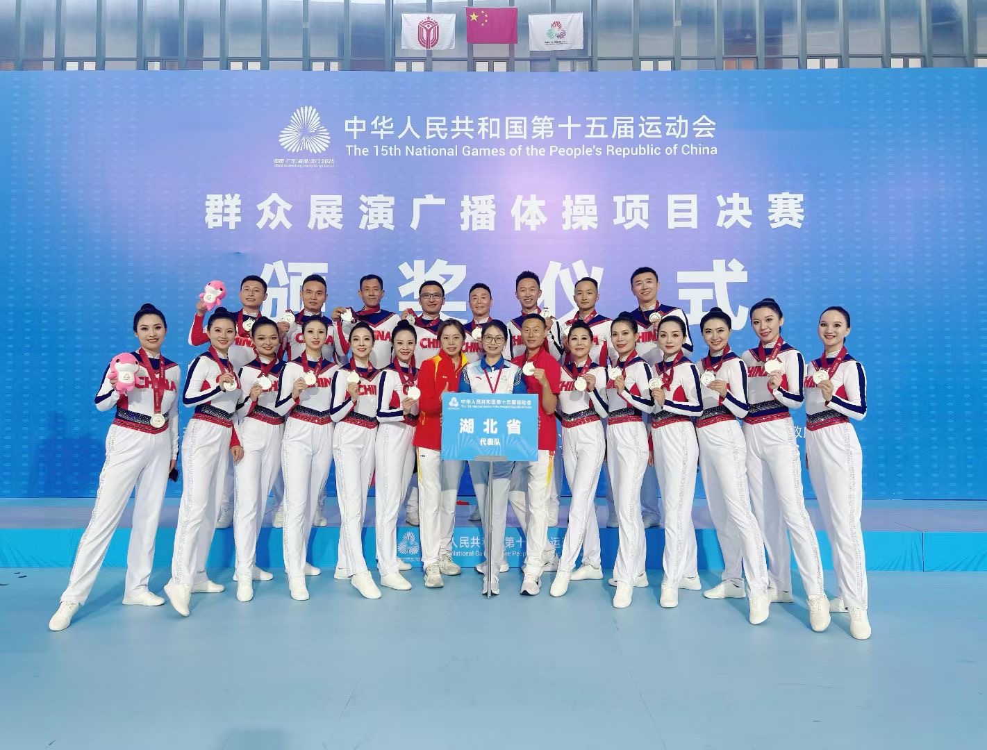 9月21日,在珠海举办的第十五届全运会群众展演类广播体操项目比赛中,湖北省代表队获全国二等奖。伟德官网教师张献芳作为队中一员,与队友协作拼搏,尽显湖北体育人卓越风采。